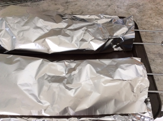 Chicken wrapped in foil.